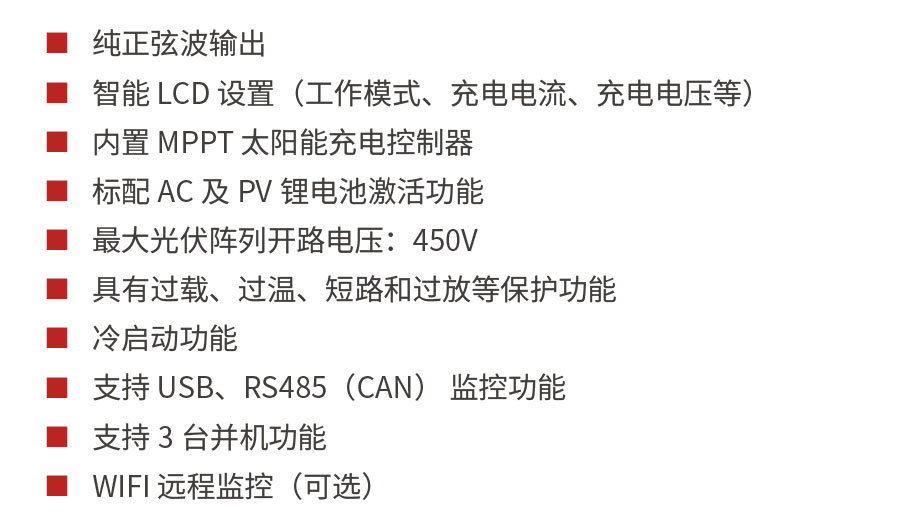 PH1800 PRO 是一款高頻離并網(wǎng)一體的光伏逆變器,內(nèi)部集成 MPPT 控制器、AC 充電器、逆變器等功能模塊于一體,此系列產(chǎn)品無需電池即可運行。最大光伏陣列開路電壓可達 450V,最大功率點電壓為 150~430V,可幫助用戶充分利用太陽能。