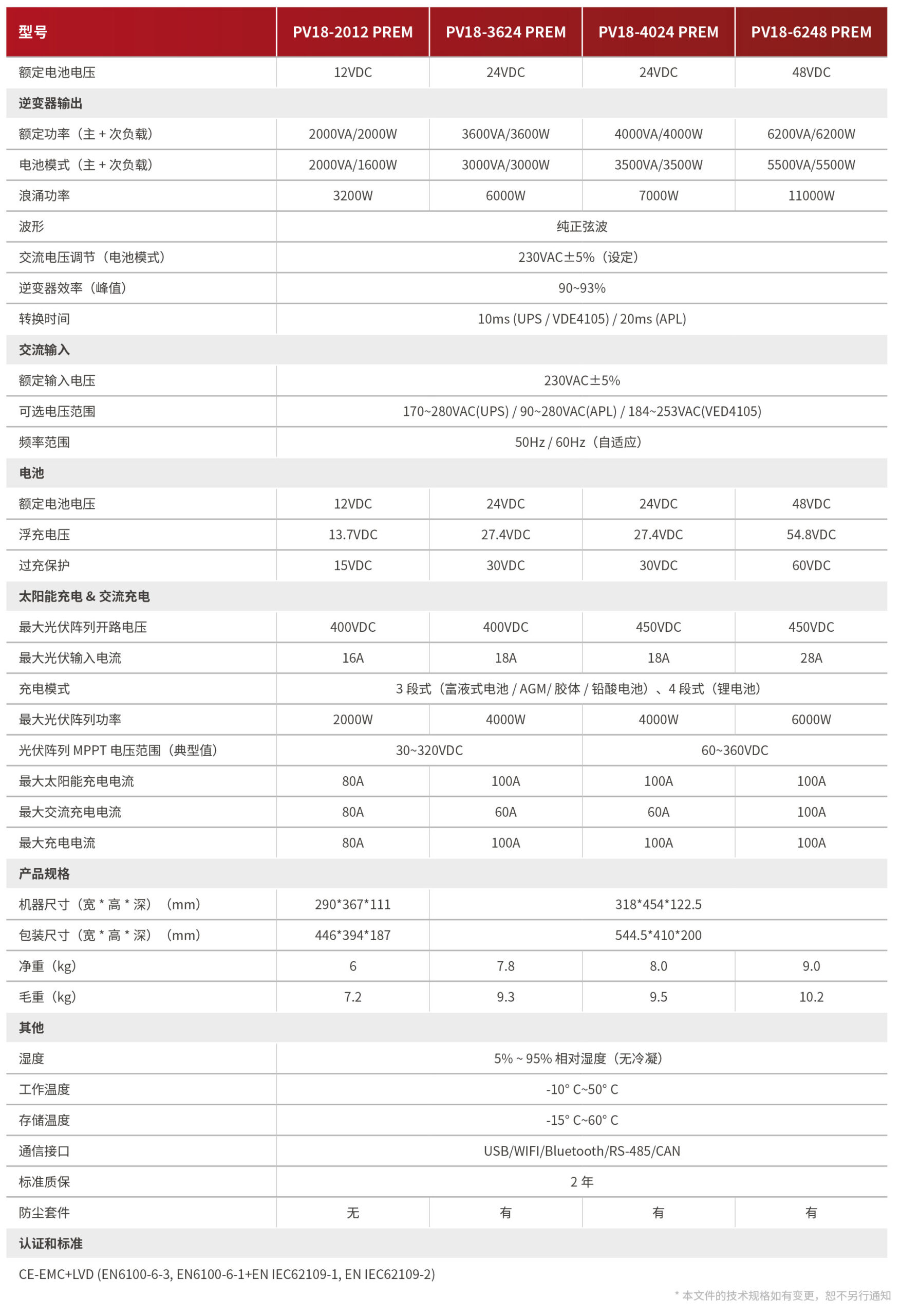 PV1800 PREM 是一款正弦波離網(wǎng)雙輸出逆變器,結(jié)合了逆變器、MPPT 太陽能充電器和市電充電和旁路輸出的功能,可為負(fù)載提供不間斷的電源輸出。無需電池即可運行。最大光伏陣列開路電壓可達(dá) 400V/450V,安裝太陽能板更加簡捷。