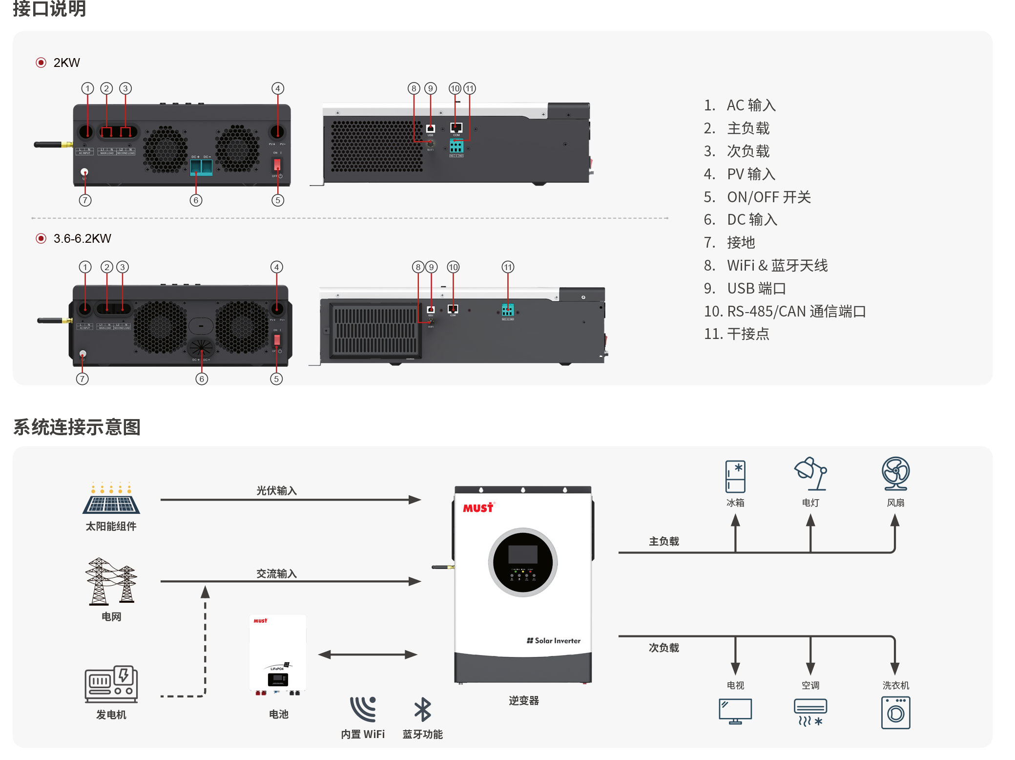 工作方式: 正弦波離網(wǎng)雙輸出逆變器