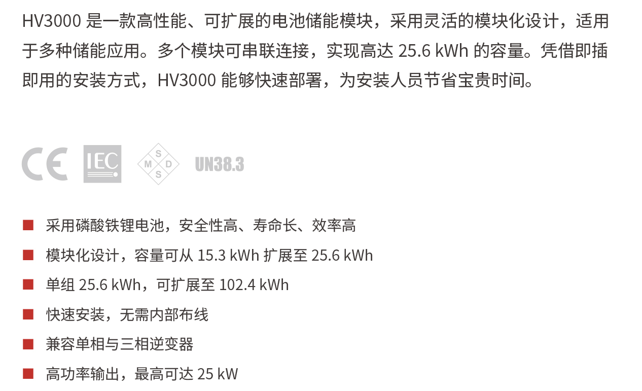 HV3000 是一款高性能、可擴(kuò)展的電池儲能模塊,采用靈活的模塊化設(shè)計(jì),適用于多種儲能應(yīng)用。